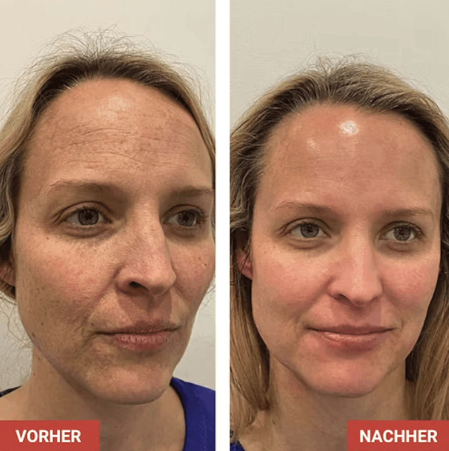 Feineres Hautbild, kleinere Poren, gleichmäßiger Teint.